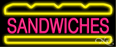 Sandwiches:Pink. Logo: Yellow.