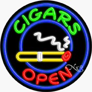 Cigars: Green. Open: Red. Logo: Y, W, R,.