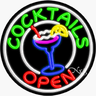Cocktails: G,. Open: R,. Logo: R, W, Y, P,.