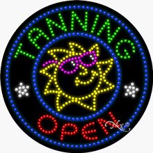 Tanning Open: G, R,. Logo: Y, W, P, B,.
